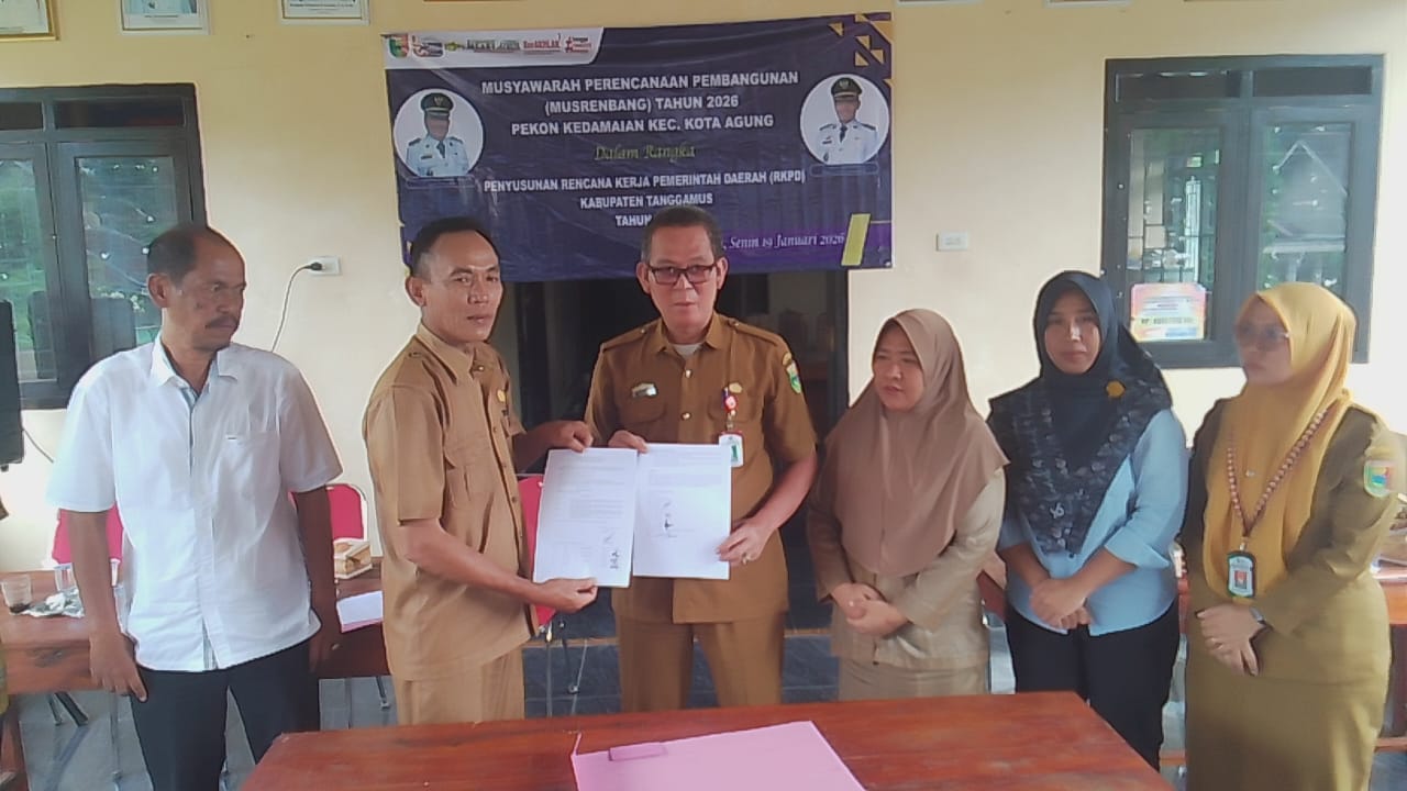 Tanggamus — Lampung dalam berita Pemerintah Pekon Kedamaian, Kecamatan Kotaagung, Kabupaten Tanggamus, menggelar Musyawarah Perencanaan Pembangunan (Musrenbang) Tahun 2026 sebagai bagian dari tahapan penyusunan Rencana Kerja Pemerintah Daerah (RKPD) Kabupaten Tanggamus Tahun 2027. Kegiatan tersebut berlangsung pada Senin, 17 Januari 2026, bertempat di Balai Pekon Kedamaian.